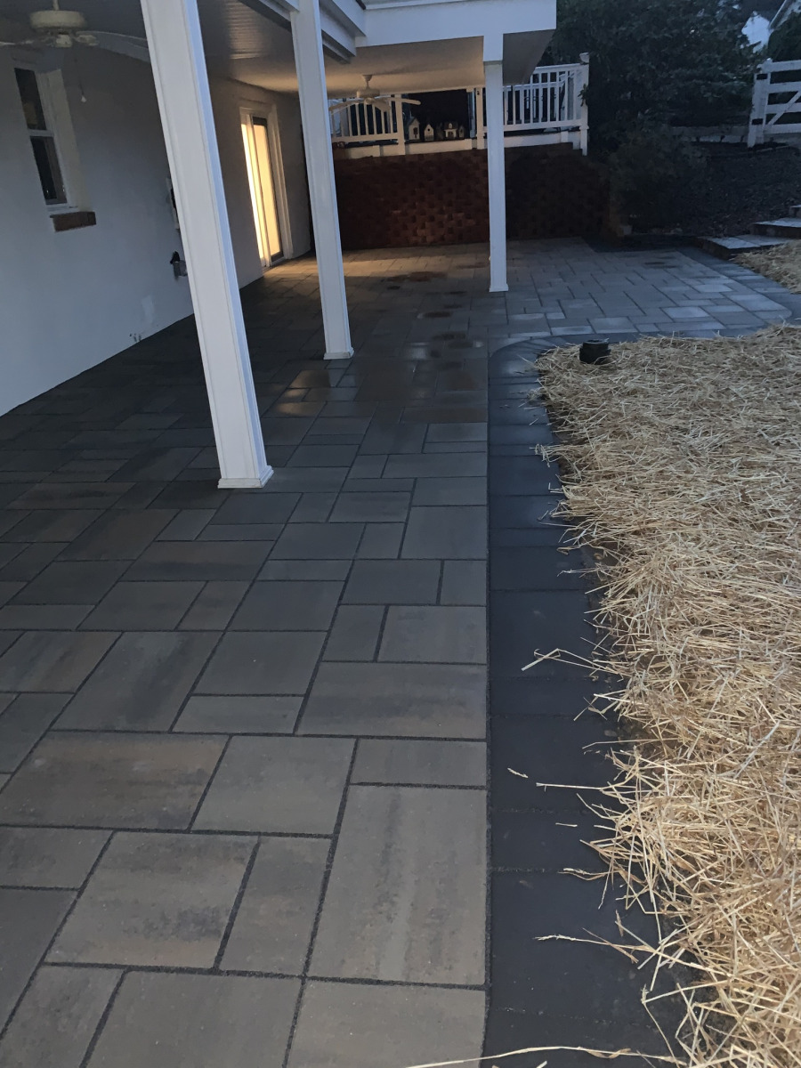 A new patio, step entrance, and boarder accent turned this space into a clean, functional outdoor area ready to enjoy for years to come, with special attention to extended treads on steps to accommodate every member of the family.